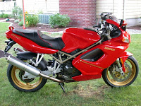 Painted and clearcoated GOLD rims, full-floating superbike rotors (hardly seen on a street bike) that produce powerful stops without warped rotors! Race Tech (BCM Ducati installed) fork internals set up for 200 lb rider, that has perfect control. Tapered roller bearings in the steering head (replacing the weak ball bearings). BCM 1\2" handlebar risers. LED battery voltage gauge. Heated grips. Custom cruise control. All electrical accesories have seperate fuses and relays. Also I've installed larger battery cables to help with the starting and the headlight is run through a relay so that it shuts off during start up to save the battery, which is new.